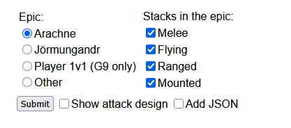 Then chose your Epic you want to calculate for. Epics like Doomsday, Fallen King or Wolf use “Other” option. Always check for types of monsters on the Epic you are attacking but by default you can leave all 4 types on. Then click Submit